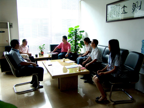 2008年7月17 日,百度(中国)有限公司华南管理委员会总监谢方敏先生携广州分公司大部总监莫莉娜一行来广州市国研机械设备制造有限公司访问,公司总经理王声位,副总经理、党支部书记王声跃及公司信息部负责人进行了座谈。