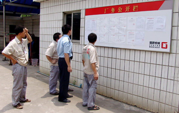 国研机械员工正在观看厂务公开栏